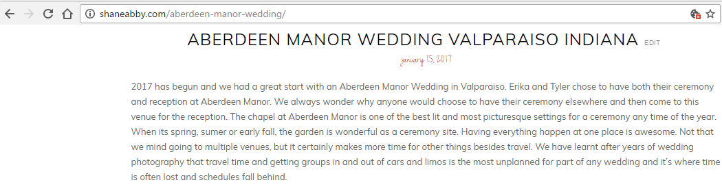 Rookie Mistake: I still see a lot of photographers using their client’s names in the titles. Unless you’re trying to rank in Google for their first names (i.e. “Tina and Tim’s Wedding”), we’re far better served focusing on keywords and location.